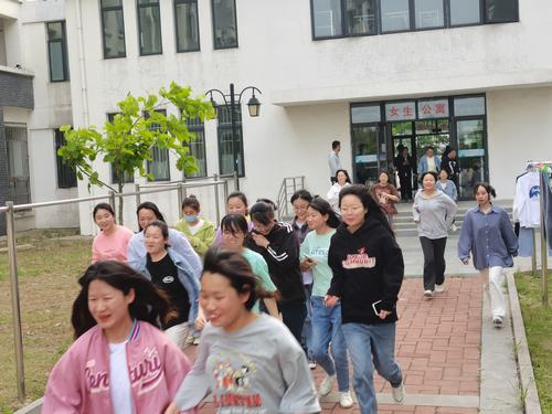 活动现场,参演师生听到逃生信号后,按规定线路有序迅速撤离宿舍,到达指定地点集中后迅速整队,清点报告人数。演练过程紧张有序,达到了预期效果。