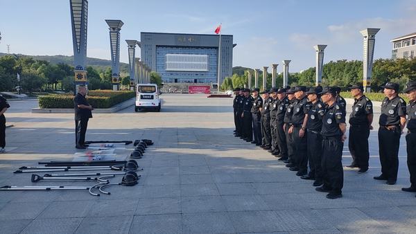 此外,为提升安保人员的安全服务意识和应急处理能力,筑牢学校安全防护网。9月29日下午,保卫处组织校园安保队伍开展业务培训,围绕消防安全、反恐防暴、人员素养以及假期安全等方面对安保人员提出工作部署和要求,随后进行了反恐、消防等实操演练。