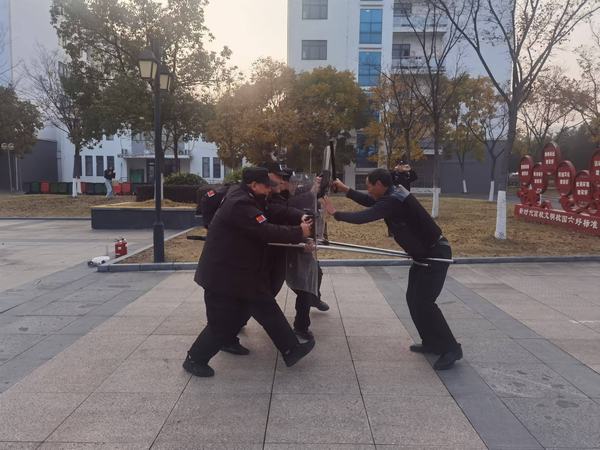 派出所民警对参演人员进行了反恐防暴知识培训,详细讲解面对暴恐事件时的应急处置方法、自我保护技巧以及各类防暴器械的使用要点。通过模拟校园闯入的不法分子闯入校园情景,检验校园保安人员报警、疏散学生以及使用防暴器械等处突能力。