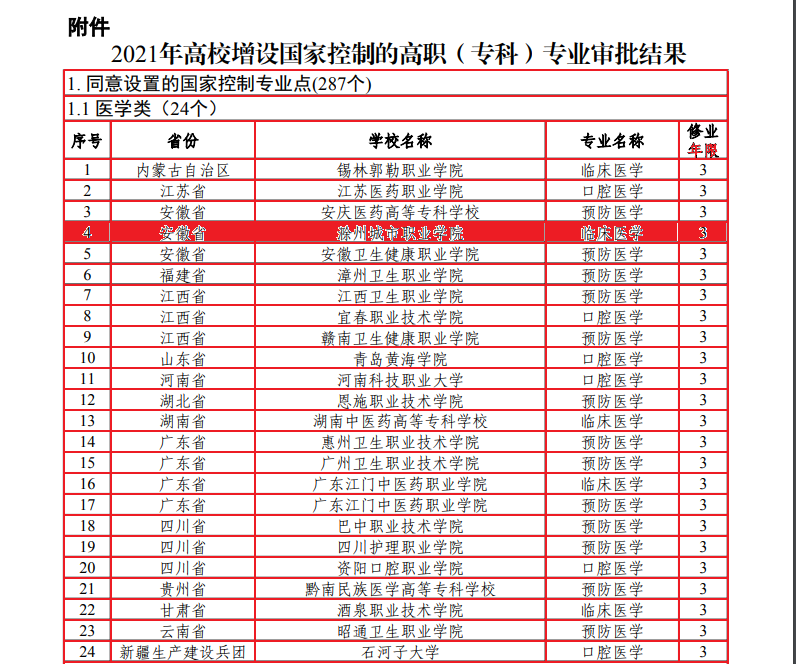 近日,教育部下发《教育部关于公布2021年高校增设国家控制的高职(专科)专业审批结果的通知》(教职成函〔2021〕1号),我院申报的临床医学专业顺利通过教育部审核批准,自2021年起开始招生。