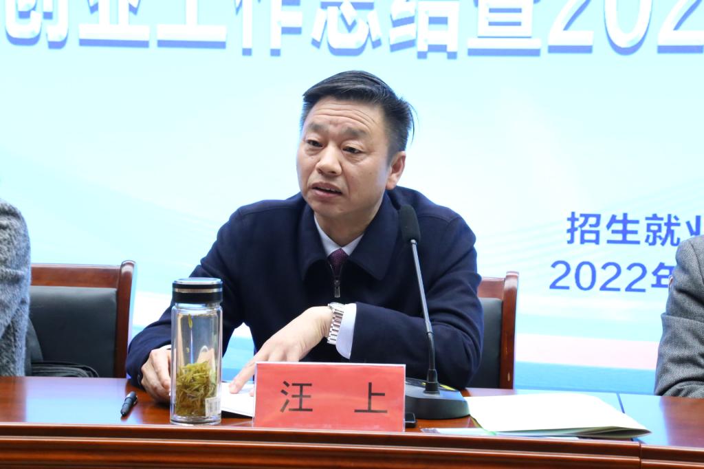 会上,汪上作动员讲话。汪上充分肯定了我校2022届毕业生就业创业工作中取得的成绩,并对招生就业处和各学院就业工作团队的辛苦付出表示感谢。他强调,全校教职员工要深入学习贯彻党的二十大精神,全面落实党中央、国务院对高校毕业生就业创业工作的决策部署。汪上提出五点要求:一要提高认识看就业。就业是民生之本,就业是办学之基。各部门、各二级学院要把毕业生高质量充分就业作为就业工作的总体目标,进一步增强责任感、使命感和紧迫感;二要提高站位稳就业,要站在讲政治的高度、促民生的全局和学校事业发展的大局“稳就业”;三要导向明确抓就业,要树立就业工作就是教学工作、就业工作就是学生工作的意识,使人才培养、学生管理、就业创业融合融通;四要担当作为促就业,大力宣传“乡村振兴战略”等国家政策,用足用好各项就业政策,继续广泛开展访企拓岗促就业行动;五要挖掘潜力保就业。要做好精准帮扶重点群体毕业生、鼓励毕业生应征入伍、开发专升本潜力、挖掘校友资源等工作,确保2023届毕业生更加充分更高质量就业。