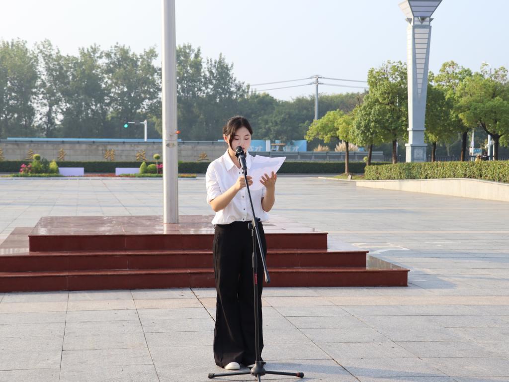 主题宣讲,抗战精神薪火相传。升旗礼毕,学生代表孙榕做国旗下讲话,她号召全体同学铭记历史,珍惜来之不易的和平时代,并分享了自己参加安徽省青马工程高校班的学习心得,鼓励大家将缅怀先烈的情感转化为勤学笃行的实际行动,以真才实学挺起时代的脊梁,以创新与实干回应历史的呼唤。