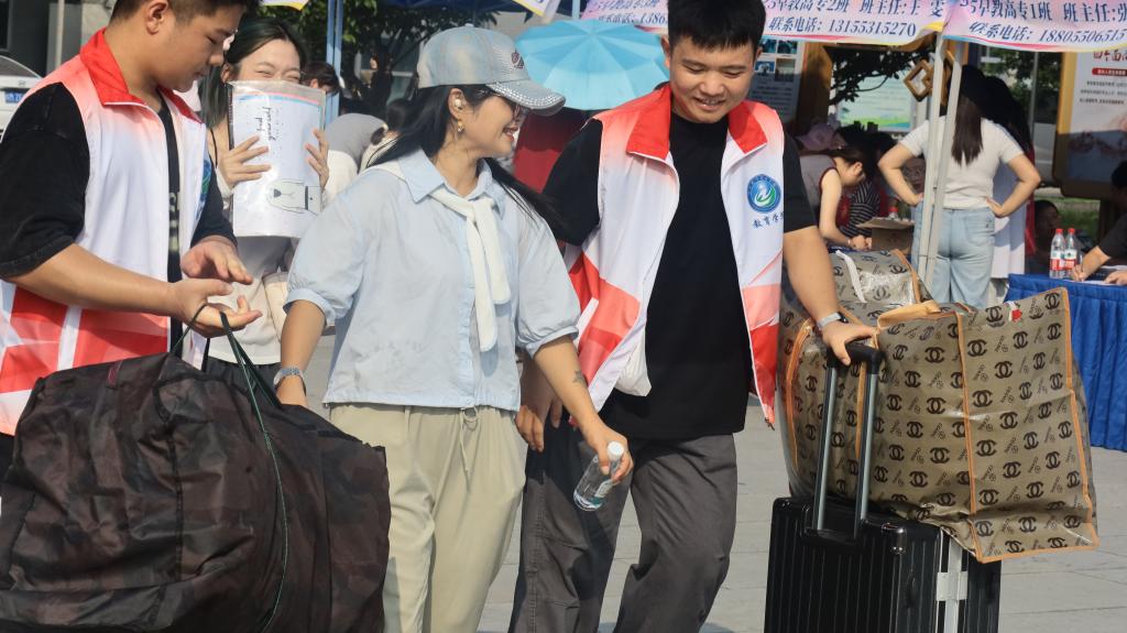 迎新现场,各个环节衔接顺畅,秩序井然。辅导员(班主任)细致地核对新生信息,给他们发放新生礼包,并耐心解答疑问;志愿者们忙碌的身影到处可见,他们帮助新生办理报到手续、搬运行李、介绍校园环境,一路热情接待;安保人员在校门口引导进校车辆,为校内交通安全保驾护航....学校还设立绿色通道和收费咨询工作台,为家庭经济困难的学生解答相关资助政策和解决新生缴费相关问题。这些贴心周到的服务,使新同学在第一天踏入新环境时就感受到了温暖。