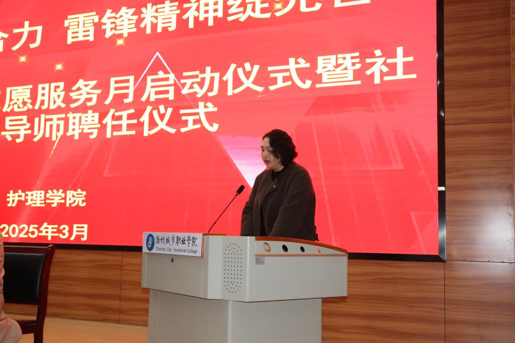 紧接着,团委陈书记高度赞扬了护理学院在志愿服务方面所取得的成就,并对未来的志愿服务工作提出了殷切期望。她鼓励青年志愿者们要继续发扬雷锋精神,不断提高自身素质和服务能力,为推动志愿服务事业的蓬勃发展贡献青春力量。