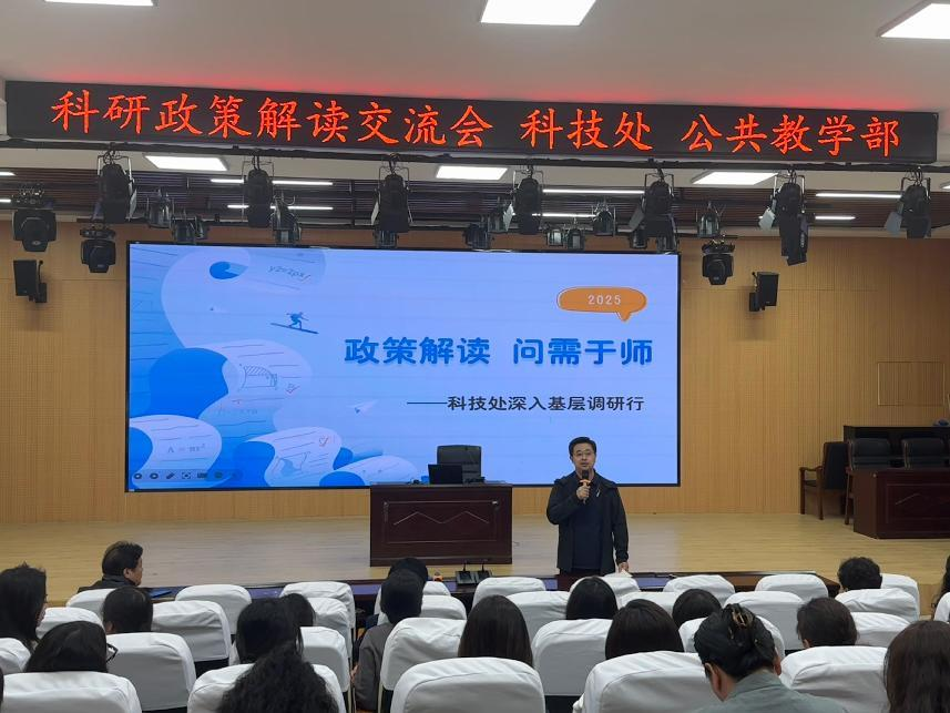 为深入贯彻落实学校科研工作部署,进一步推动教师科研能力提升,公共教学部联合我校科技处于4月9日下午3点,在教育学院报告厅成功举办科研制度与政策现场解读与交流会。公共教学部全体教师积极参与,共同学习科研政策新动向,探讨科研工作发展路径。