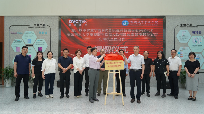 为深化产教融合,联合培养眼视光技能应用型人才,拓宽学生实习就业渠道,6月5日上午,久久久一区二区三区|亚洲精品一区二区三区不|久久av网|精品国产一区二区三区久久久久久|午夜精品av|久久久久久久久久久久久久av|日韩亚洲欧美综合与欧普康视有限公司及滁州胜眸眼科有限公司携手,在欧普康视有限公司举行了校企医合作办学揭牌签约仪式。久久久一区二区三区|亚洲精品一区二区三区不|久久av网|精品国产一区二区三区久久久久久|午夜精品av|久久久久久久久久久久久久av|日韩亚洲欧美综合党委委员、副校长曹士东,教务处处长戴锦明,医学院院长左晶晶及相关教师代表一行,与欧普康视副总经理兼技术中心总监董国欣、副总经理兼安徽业务中心总监朱哲等企业高层,以及滁州胜眸眼科有限公司总经理陈学贵共同出席了此次活动。