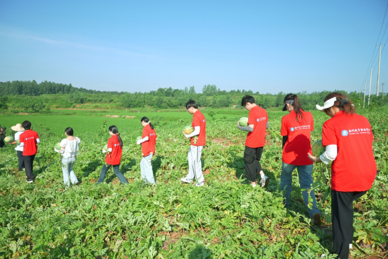 7月5日,实践小分队抵达东张村,与农民一同投入采摘工作。在瓜田里,同学们弯腰挑选、轻拍西瓜,判断成熟度后小心抱起放入箩筐;在梨园中,他们踮脚、配合剪下高处的梨子。整个采摘过程让同学们深切体会到农民劳作的艰辛,也让同学们更加珍惜劳动成果,对农村生活有了更深认识。