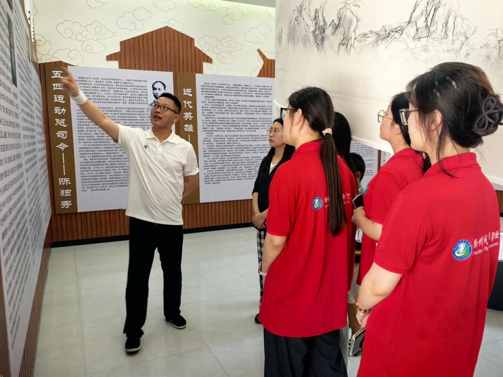参观抗战文化馆时,王旭书记现场教学,指着锈迹斑斑的大刀讲述军民共战史。志愿者引导孩子对比历史文物与定远特色农产品展柜:“这把刀守护过家乡,如今咱们的贡菊茶香飘全国——抗战精神就在建设家乡的新战场上!”孩子们触摸着泛黄的家书,在“过去-现在-未来”的时空对话中坚定报国志。