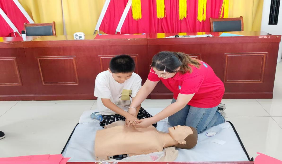 在急救技能区,入党积极分子单膝跪地示范标准CPR。孩子们在她的手把手指导下练习胸外按压,共青团员同步发放《红色急救手册》。“学急救也是学英雄叔叔们的担当!”12岁的少先队员亮亮说道。党团员医疗组还开展结核病防治宣传,将健康守护作为“我为群众办实事”实践延伸。