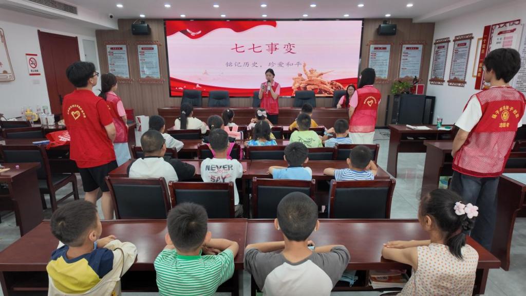 活动融入红色教育与传统文化元素,厚植青少年精神素养。红色主题活动中,学生观看《建党伟业》片段后,绘制“五四运动”“中共一大”等主题手抄报,其中3年级学生王梓涵绘制的五角星图案旁,用拼音标注“致敬英雄”;7月7日,志愿者结合历史图片讲解“七七事变”,学生们通过“和平许愿卡”写下“要好好学习,保护祖国”等留言,强化“铭记历史、珍惜和平”的信念。传统文化课堂上,学生通过“古诗接龙”“诗人故事猜猜看”等互动学习唐诗,低年级临摹“床前明月光”配画,高年级以“飞流直下三千尺”为主题创作水彩画,其中5年级学生李雨桐的作品被社区选为文化墙展示素材;合唱《红星歌》《歌唱祖国》时,学生们站姿挺拔,虽音准偶有偏差,但节奏整齐,展现出对爱国歌曲的理解。