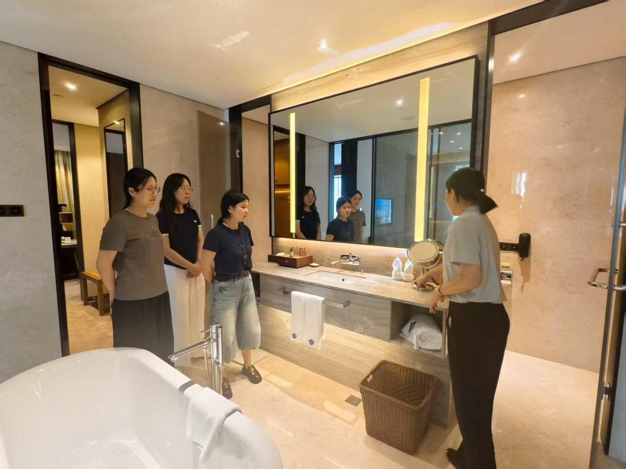此次培训由管理学院专业教师团队精心策划实施,以“理论筑基、实操强能”为核心,围绕形体礼仪、会务服务、客房服务、餐饮服务四大模块展开系统教学。培训期间,学员们在学院理论课教室完成理论知识学习,先后前往餐饮实训室、金鹏广场酒店客房部、凯迪温德姆至尊豪庭大酒店开展实操训练,通过“模拟场景演练+真实岗位实践”相结合的方式,熟练掌握了服务规范与实操技能。结业前的综合考核中,学员们在会务场地布置、客房标准化清洁、中西餐摆台等实操环节表现突出,考核通过率达100%,充分展现了扎实的学习成果。
