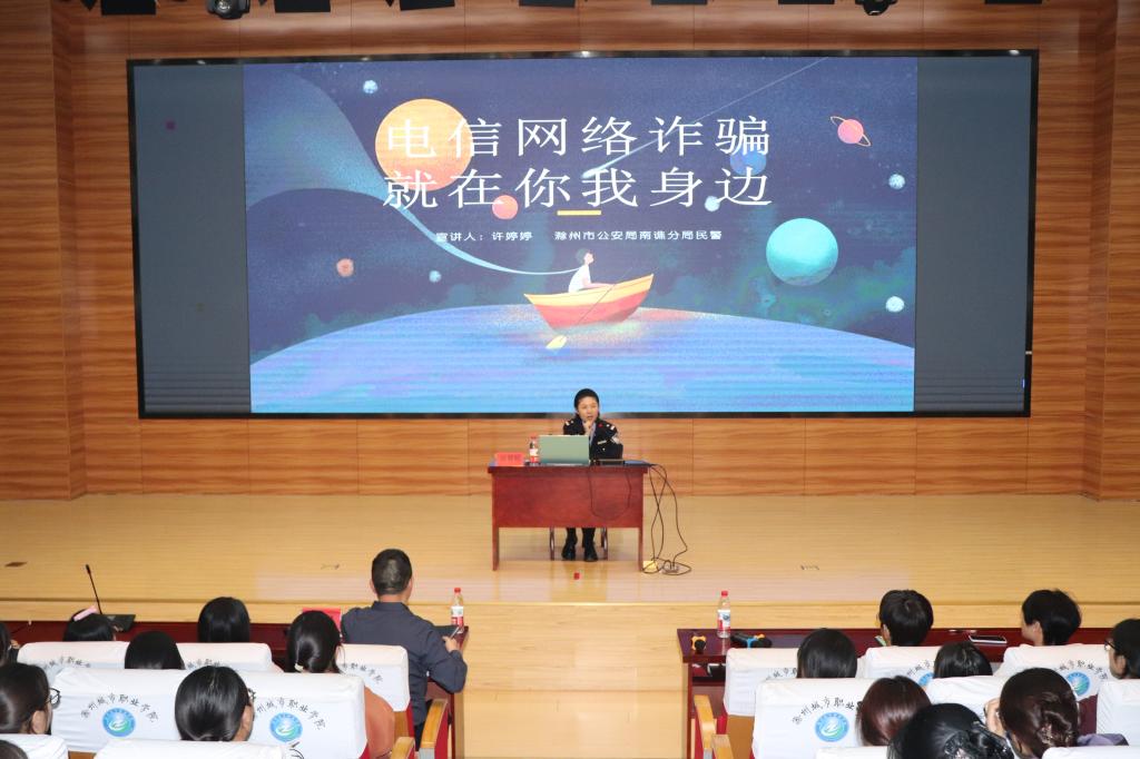 为进一步提升全体师生防范电信网络诈骗的意识与能力,有效遏制校园电信网络诈骗案件发生,保障师生财产安全及校园和谐稳定,10月16日下午,护理学院在校第二学术报告厅成功举办“电信网络诈骗就在你我身边”主题防诈专题讲座。本次讲座特邀滁州市公安局南谯分局民警许婷婷主讲,学院党总支书记席民、25级新生辅导员及近200名学生代表参与活动。
