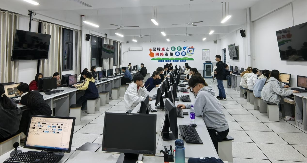 比赛现场,参赛选手全神贯注投入竞技,键盘敲击声与鼠标点击声交织成灵动的“技能旋律”。监考教师全程严格督导,认真记录赛事情况,保障了竞赛的专业性与严谨性。