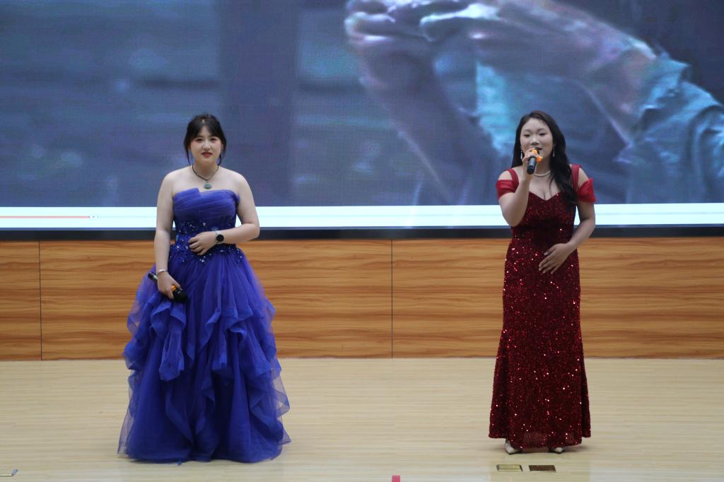 第一轮表彰中,辅导员代表为荣获“突出贡献奖”“最佳运动员”及“优秀运动员”称号的师生颁发荣誉证书,鼓励他们将赛场上的拼搏精神延续到学习与工作中;在运动员代表分享环节,赵想、王博豪两位同学结合自身参赛经历,讲述了训练中的汗水与坚持、赛场上的协作与突破,真挚的分享引发在场师生的强烈共鸣。分享结束后,陈骥远同学带来歌曲《in the end》,激昂的旋律传递出永不言弃的信念。
