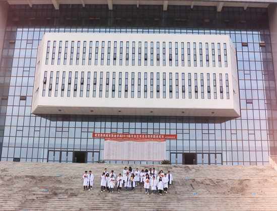 二十多名医学系学生身穿白大褂,从学院图文中心缓缓走出,且行且吟舒婷的《致橡树》,学生们在南广场上用清澈高亢的嗓音吟诵着春色般温婉的诗句,他们饱含感情的朗读吸引了众多师生纷纷停下脚步,情不自禁加入到读诗的队伍中来。