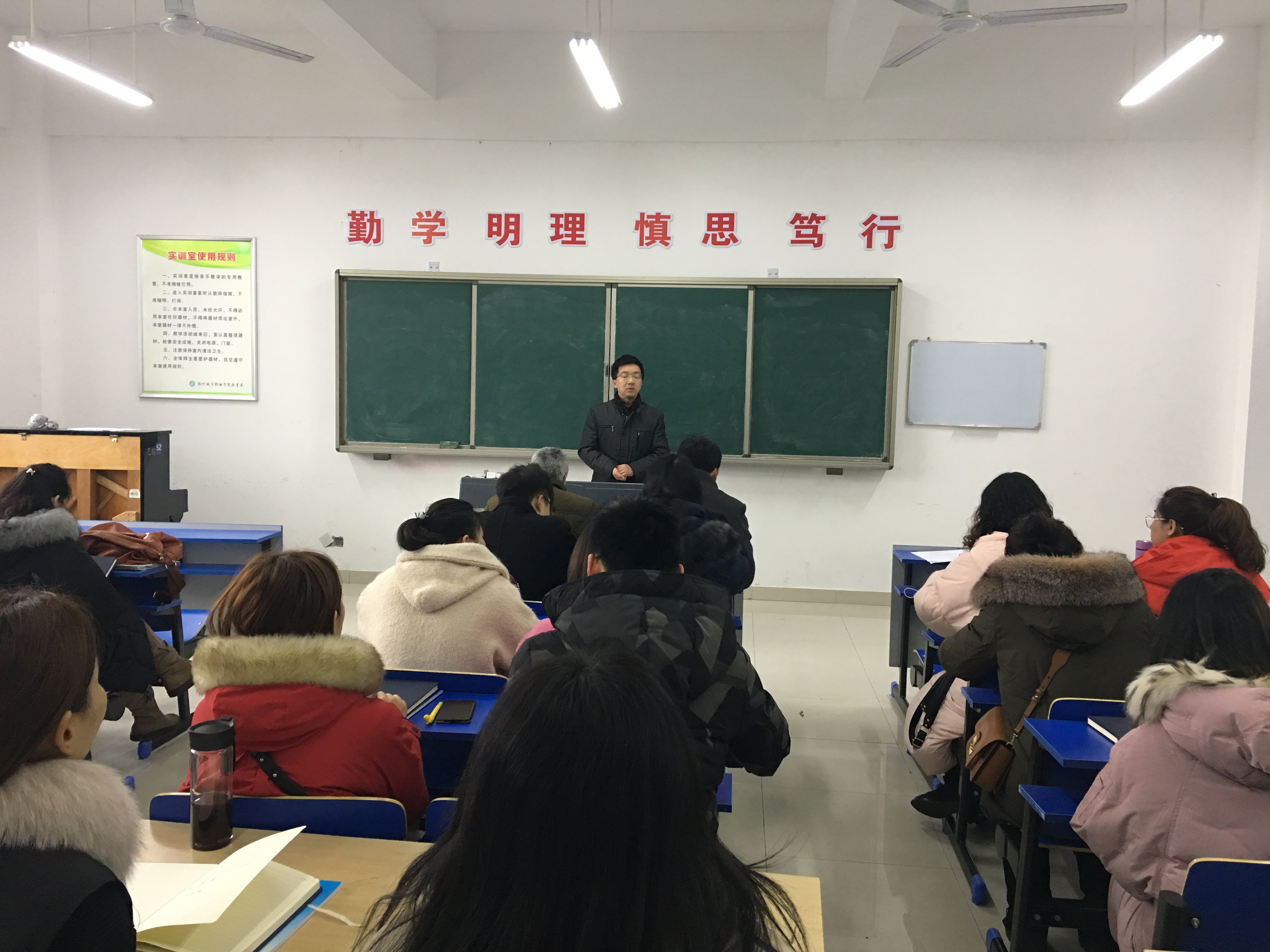 会议由系党总支书记杨孝富同志主持,全体教师参加了会议。系主任钱中宝同志对2018年度工作进行了总结并提出了2019年艺术系工作计划,从师德师风建设、教师基本功训练、日常教学管理等方面提出具体要求,并就新学期的教学工作做出部署。