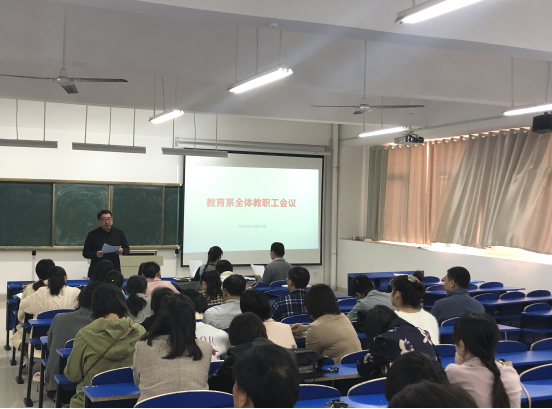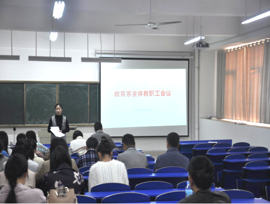 10月21日下午4时,教育系在C1南2203召开了全体教师思想政治理论学习暨师德师风警示教育大会。系党总支书记钱庆兵,系主任、党总支副书记高国柱、系党总支副书记徐立娟及全体教职工参会。会议由党总支书记钱庆兵主持。