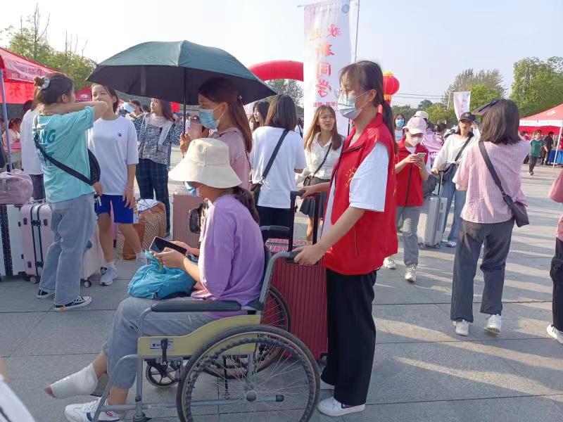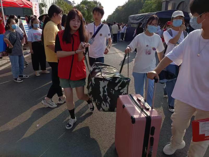 早上7点,护理系学生干部以及志愿者们早早的来到了南广场新生接待处,进行着忙碌又紧张的迎新准备工作。来自全国各地的莘莘学子们陆陆续续的报道,一张张崭新的面孔为校园注入新鲜活力。志愿者们面带微笑,为新生提供咨询、指引、搬运行李等服务。在校门口,新生报到处、核酸检测处、绿色通道,咨询处等都有他们忙碌的身影。全体志愿者坚持奋战在自己的岗位上,相互配合,忙得不亦乐乎,迎新工作有条不紊的进行。