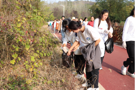 紧接着,远足活动正式开始。师生们,排成一列纵队高举旗帜秩序井然地前行。他们一个个精神饱满、士气高昂,一路口号、一路高歌。部分学生和老师,手拿垃圾袋,边前行,边捡拾垃圾,为文明创城助力。展现了医学系学生党支部蓬勃向上、服务为民的精神风貌。