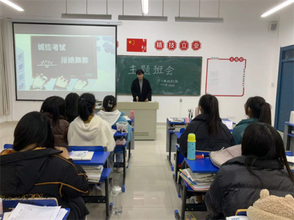 班会上,辅导员(班主任)带领同学们阅读了《国家教育考试违规处理办法》等有关规定,学习了《学生手册》上有关诚信考试的相关内容以及考试违纪、作弊处理办法。同时,他们强调了期末考试的重要性,努力在考试前的时间里攻克学习中遇到的难题,多与老师和学生沟通,合理安排作息时间,要树立起自主学习的意识,更要坚定自己的信念。通过此次主题活动,让学生充分认识到了诚信考试的重要性,认识到培养良好的道德品质,就要从身边每一件小事做起,从自身做起。