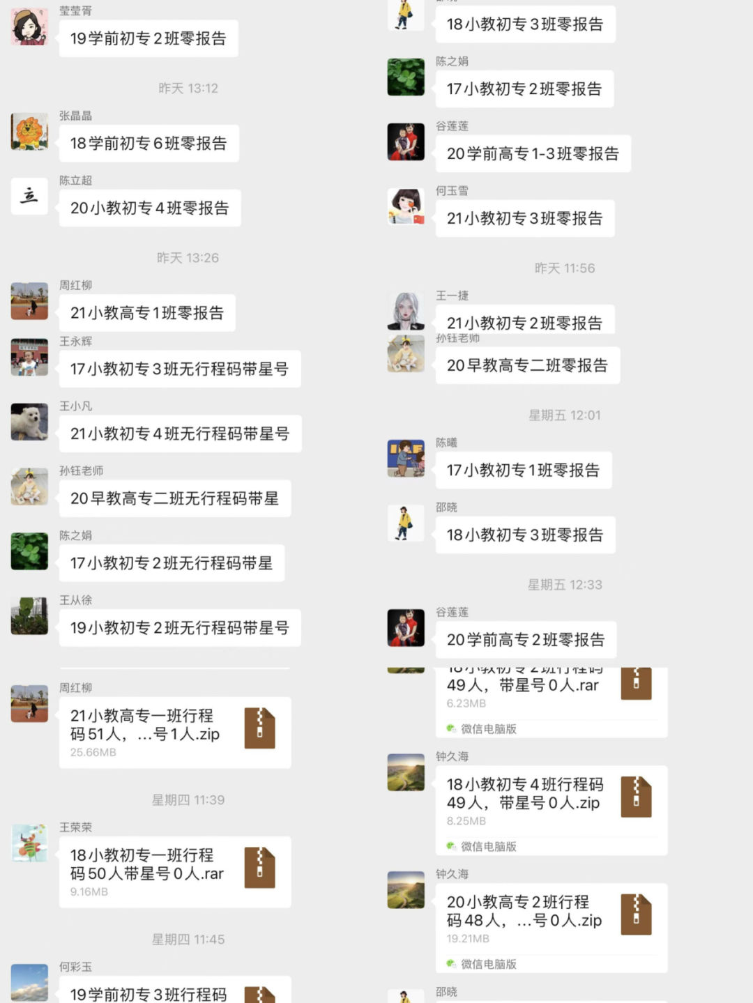 全体辅导员、班主任、教研室主任每天定时汇报班级师生是否有发热情况,做好师生的身体健康监测工作。