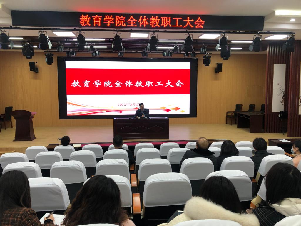 3月17日,教育学院于C2北报告厅召开全体教职工大会,再次强调疫情防控的重要性与紧迫性,号召全体教师积极配合做好疫情防控任务。