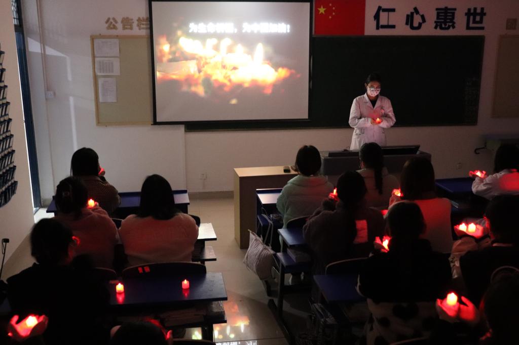 护理学院惊闻噩耗,化危为机,迅速在全院开展生命教育主题班会,举行为失事东航客机上的同胞祈福活动,凝聚打赢疫情防控阻击战的决心与力量。3月21日晚,护理学院部分班级结合疫情防控召开生命教育主题班会,举行“为生命祈福、为中国加油”祈福活动。学院团总支组织学生用电子蜡烛摆出“平安”和心形字样,手捧蜡烛默默地为失事客机上的同胞们祈福。