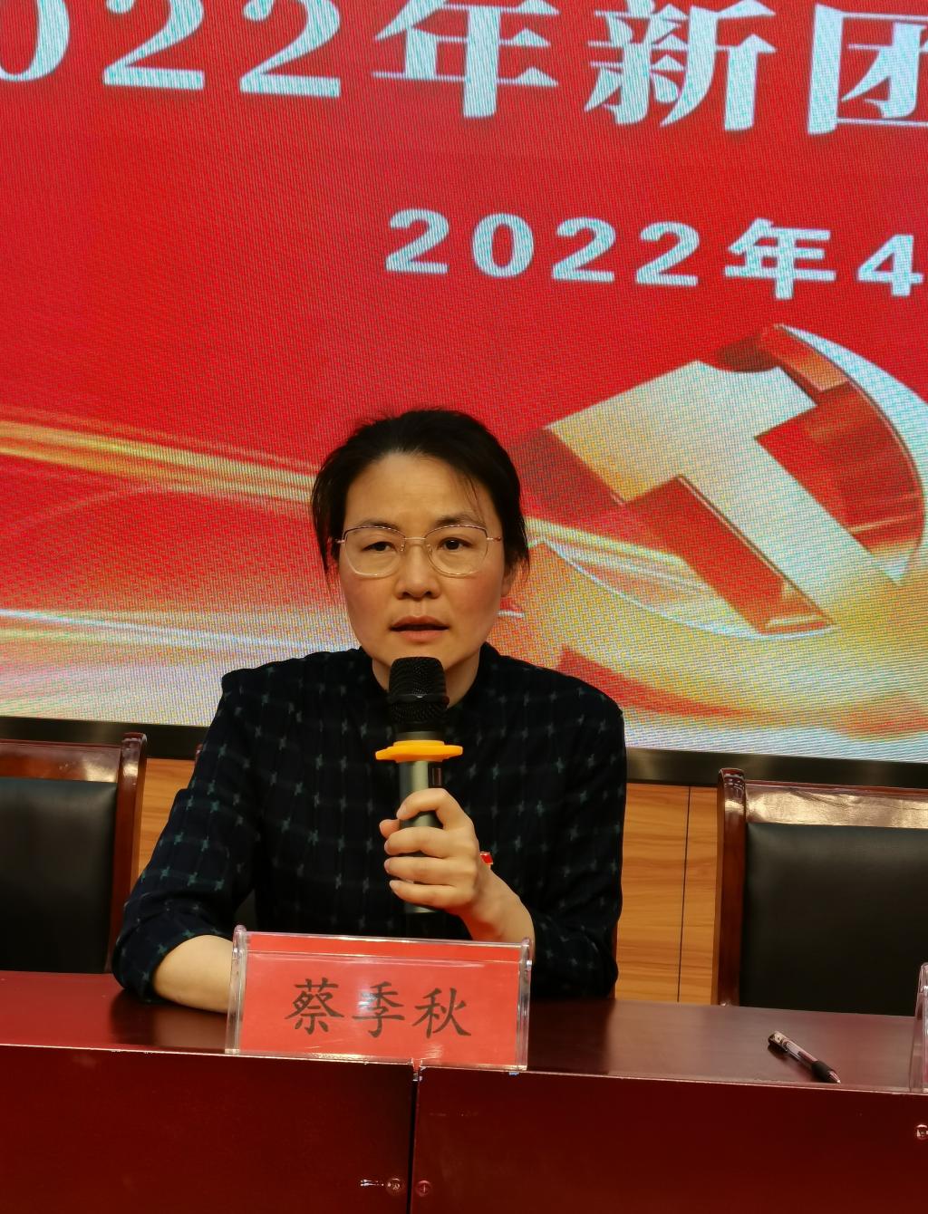 蔡季秋代表党总支致辞。她对新入团的同学表示热烈的祝贺,勉励各位青年学子要时刻不忘自己团员身份,并希望:全体团员青年应在学生中起到模范带头作用,始终忠诚于党,坚守信仰,勇于自我革命,意气风发、展现青年的锐气,在实现中华民族伟大复兴中国梦的进程中不断开拓创新,满怀信心、踔厉奋发,笃行不怠,以优秀的成绩向团组织报告,用青春谱写人生华丽的乐章,以优异成绩迎接党的二十大胜利召开!
