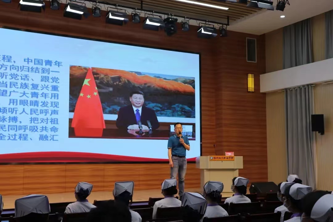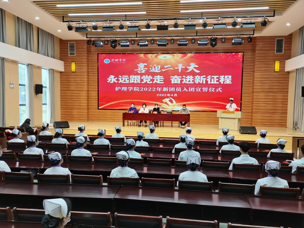 为喜迎党的二十大,弘扬“五四运动”精神,引导广大团员青年更好地发挥先锋模范带头作用,在即将迎来中国共青团成立100周年之际,4月27日下午,护理学院在第二学术报告厅举行2022年新团员入团宣誓仪式,护理学院党总支书记蔡季秋,党总支委员、副院长、教工党支部书记左晶晶,党总支委员、组织员、学生党支部书记李勋华,学管老师张莹莹参加活动,22名新团员和团学干部代表近50人参加宣誓仪式。仪式由党总支副书记朱启来主持。