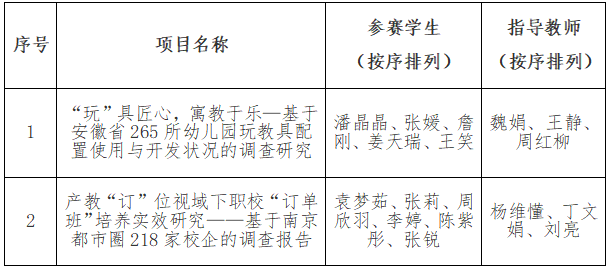 根据《关于举办第十九届“挑战杯”全国大学生课外学术科技作品竞赛的通知》等要求,经过校赛、省赛等环节,学校拟推报以下2个项目参加第十九届“挑战杯”全国大学生课外学术科技作品竞赛国赛。现将推报名单公示如下: