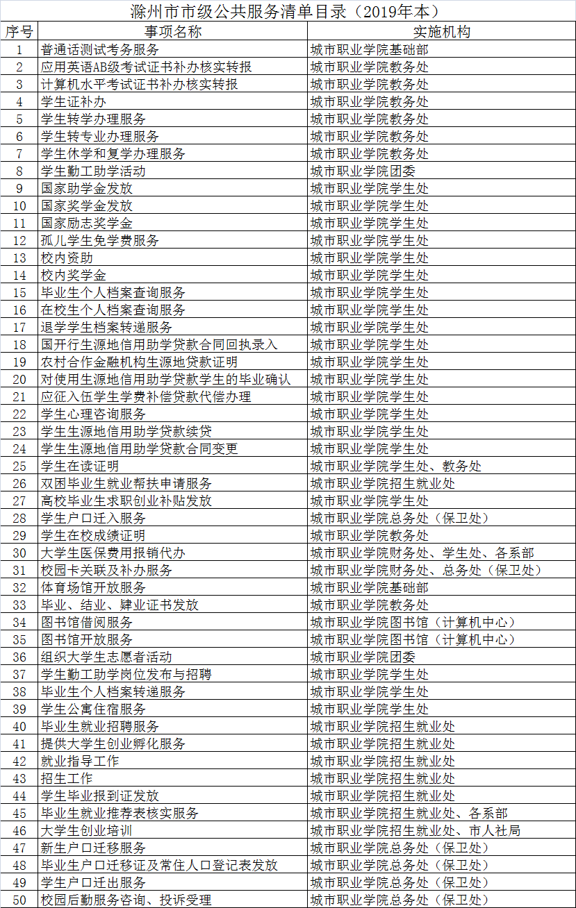 现将学院滁州市市级公共服务清单目录(2019年本)予以公布,请遵照执行。