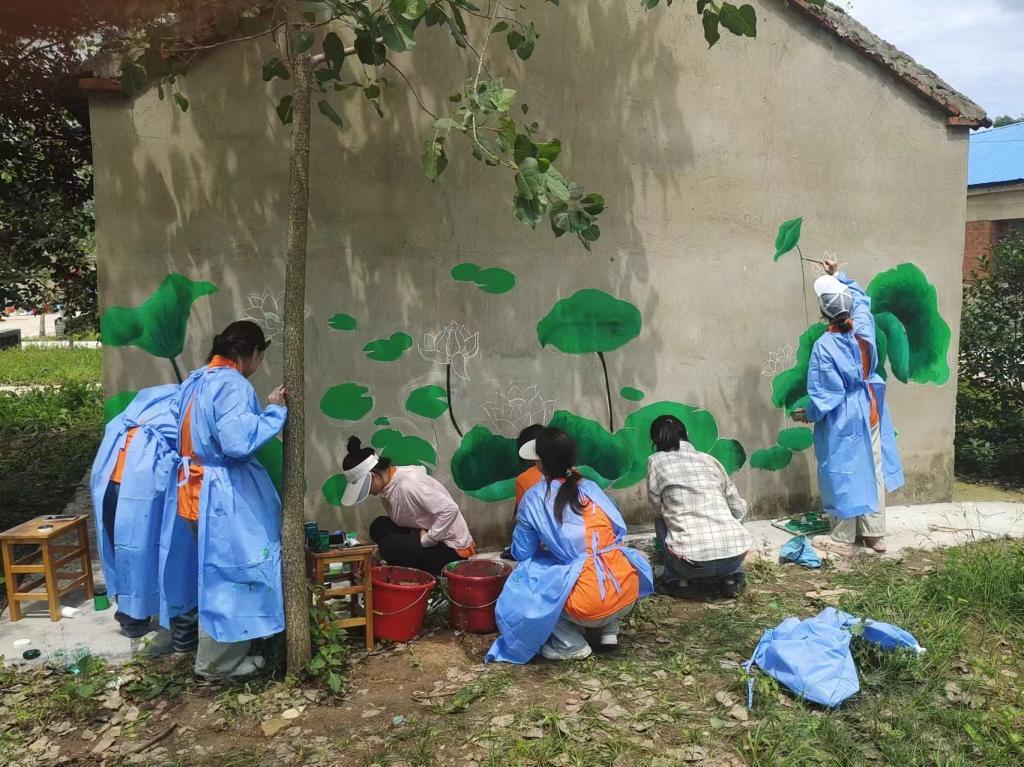 美丽乡村团结合当地特色,发挥自身专业,以墙为布,克服酷暑,用生动的色彩与笔触将乡村振兴、法制宣传、传统文化等多个方面融入到墙绘中。在宣城旌德县陈岭村,团队成员完成了5幅墙面、近300平的墙绘创作;在滁州市琅琊区太平村、西涧渡村、全椒大季村,共创作墙绘作品10余幅,得到当地政府和居民的高度认可。团队用群众喜闻乐见的方式将艺术融入乡村生活,真正在社会实践活动中做到“受教育、长才干、作贡献”,成为助推美丽乡村建设一道亮丽的风景线。