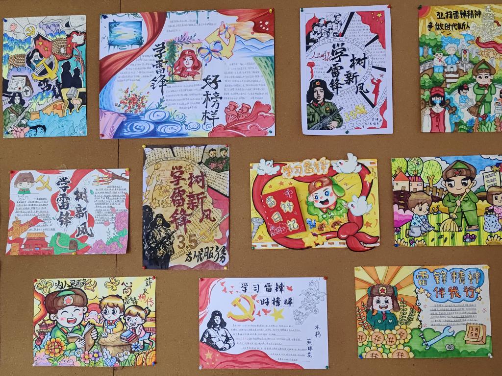 各学院班级围绕雷锋精神精心设计黑板报,将雷锋事迹、名言警句与创意绘画相结合,展现对新时代雷锋精神的理解。此类主题板报形成校园立体化育人场域,有效实现环境育人功能。在“学雷锋”绘画作品比赛中,学生通过画作为媒介重构雷锋助人场景,以书法艺术解码雷锋语录的精神密码,依托剪纸非遗技艺再现精神图谱。形成"艺术阐释-情感共鸣-价值内化"的完整教育链条。