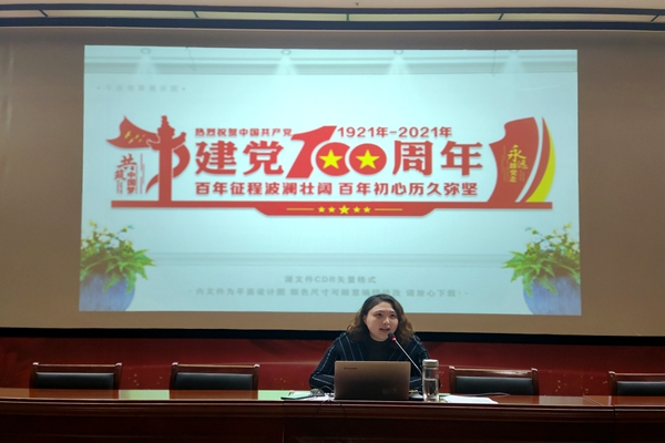 会议上,团委陈婷婷老师由旧民主主义讲到新民主主义,再讲到中国共产党的成立,详细阐述了中国共产党成立的历史必然性和伟大意义。随后,陈婷婷老师从浴血奋战,实现民族独立和人民解放;艰难探索,社会主义建设在曲折中前进;改革开放,走上中国特色社会主义新道路;不忘初心,为实现中华民族伟大复兴不懈奋斗的主线介绍了中国共产党一百年历程的波澜壮阔。最后陈老师带领同学们对比今夕、比较中外,结合中国共产党领导全国人民成功抗击新冠肺炎疫情讲解中国特色社会主义制度的优越性,引导同学们要做到吃水不忘挖井人,常怀感恩之心。
