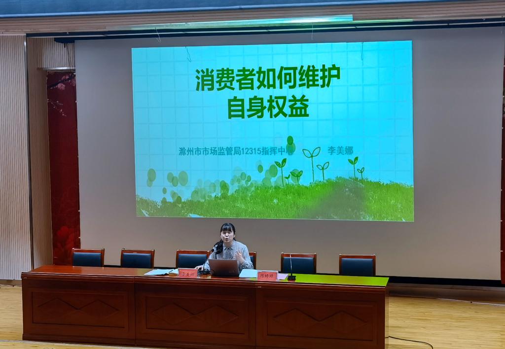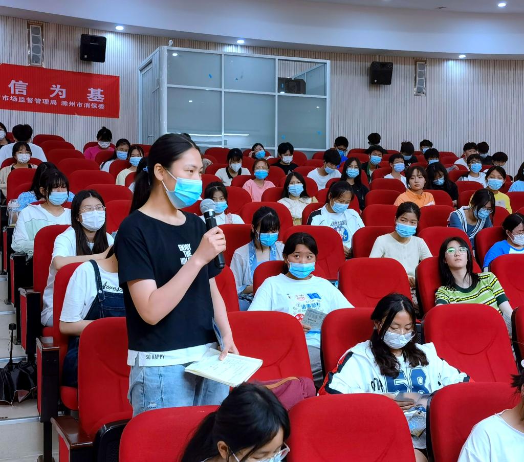 为扎实践行党史学习教育“学党史、悟思想、办实事、开新局”要求,5月28日下午,我院联合滁州市市场监督管理局开展“我为青年办实事”之消费维权知识进校园活动。滁州市市场监督管理局团支部书记李美娜、学院团委副书记陈婷婷及150名青年大学生参加了活动。
