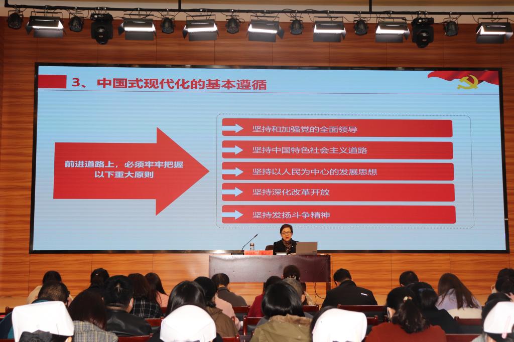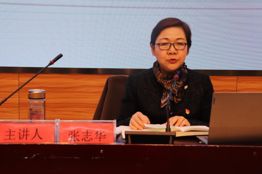 张志华紧扣党的二十大的主题和主要成果,结合我省、我市和我校的实例,边讲边议,阐述了党的二十大重大意义、重大成果,讲解了过去五年工作和新时代十年的伟大变革,阐释了习近平新时代中国特色社会主义思想的世界观和方法论和新时代党的使命任务,解读了全面建设社会主义现代化国家的目标任务和自我革命引领社会革命的要求。