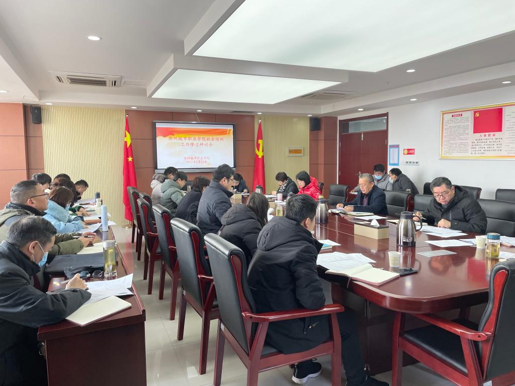 为加强学校技能型高水平大学建设,提高服务社会水平,推动学校社会培训工作高质量开展,1月12日上午,党委委员、校领导施向阳在第四会议室主持召开社会培训工作学习研讨会。教务处、财务处、招生就业科相关负责同志,各二级学院院长、教学秘书,继续教育学院全体工作人员参加会议。