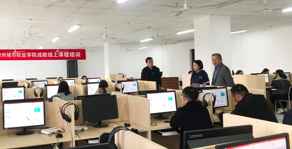 为切实做好2022年成人教育开课工作,10月21日下午,继续教育学院在图文中心3楼电子阅览室开展成人教育2022年线上课程教师培训,党委委员、校领导施向阳在继续教育学院院长许梅、副院长孟红军的陪同下到培训现场检查指导。