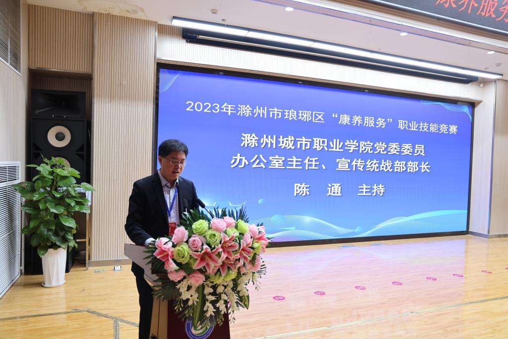 28日上午,大赛开幕式在我校图文中心四楼报告厅举行。校党委委员施向阳、琅琊区人社局局长张德余、琅琊区总工会党组书记吴迪、琅琊区民政局党组成员王哲等相关领导,涉及赛事承办的相关学院负责人以及全体裁判员、监考老师、参赛选手出席开幕仪式。仪式由校党委委员、办公室主任、宣传统战部部长陈通主持。