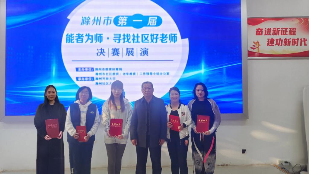 11月15日下午,滁州市首届“能者为师·寻找社区好老师”决赛在滁州开放大学开赛,我校老年大学任课教师王兴、毛丽芳、张蕾、王奕、温小娇5人参加比赛,分别取得94.2分、93.3分、92.1分、91.9分、89.8分的好成绩,最终斩获2个一等奖、2个二等奖、1个三等奖。
