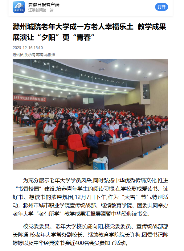 12月16日,安徽日报客户端刊登了我校老年大学新闻: