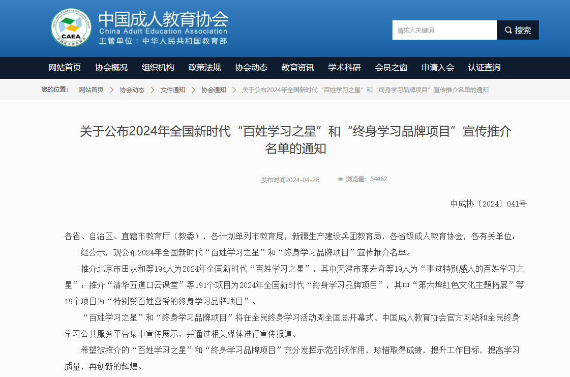 喜报!我校老年大学《“三贴近 三体现 三提升”老年教育项目》入选2024年全国新时代“终身学习品牌项目”-久久久一区二区三区|亚洲精品一区二区三区不|久久av网|精品国产一区二区三区久久久久久|午夜精品av|久久久久久久久久久久久久av|日韩亚洲欧美综合继续教育学院(国家职业技能鉴定站)