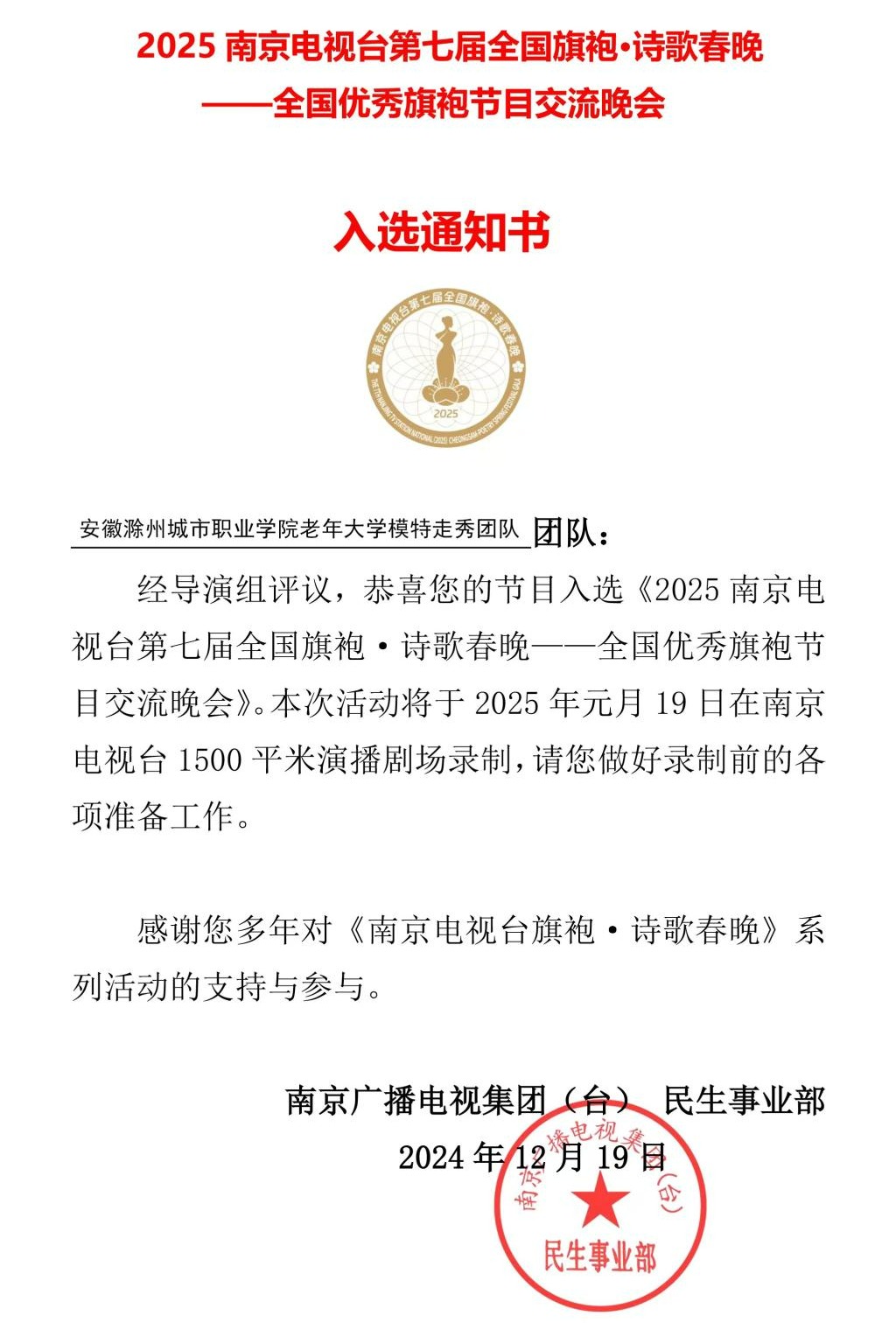 “金陵春晚舞霓裳 岁暮旗袍韵未央”——我校老年大学模特班精彩亮相2025南京电视台第七届全国旗袍·诗歌春晚-久久久一区二区三区|亚洲精品一区二区三区不|久久av网|精品国产一区二区三区久久久久久|午夜精品av|久久久久久久久久久久久久av|日韩亚洲欧美综合继续教育学院(国家职业技能鉴定站)
