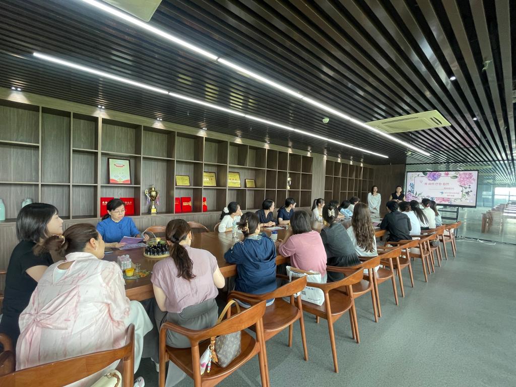 活动特邀国家植物精油疗法专业讲师顾晓媛担任主讲,带领教职工们踏上一段融合了植物智慧与端午习俗的芳香疗愈之旅。顾晓媛老师以深厚的专业素养,开启了精油知识的宝库。她从植物精粹的萃取奥秘讲起,细致解析了常见精油的特性与多元应用价值。顾老师指出,古人以芳香草药祛病防疫的智慧,与当下利用植物精油提升健康品质的理念一脉相承。教职工们凝神聆听,现场弥漫着浓厚的学习氛围与对自然疗愈力量的赞叹。