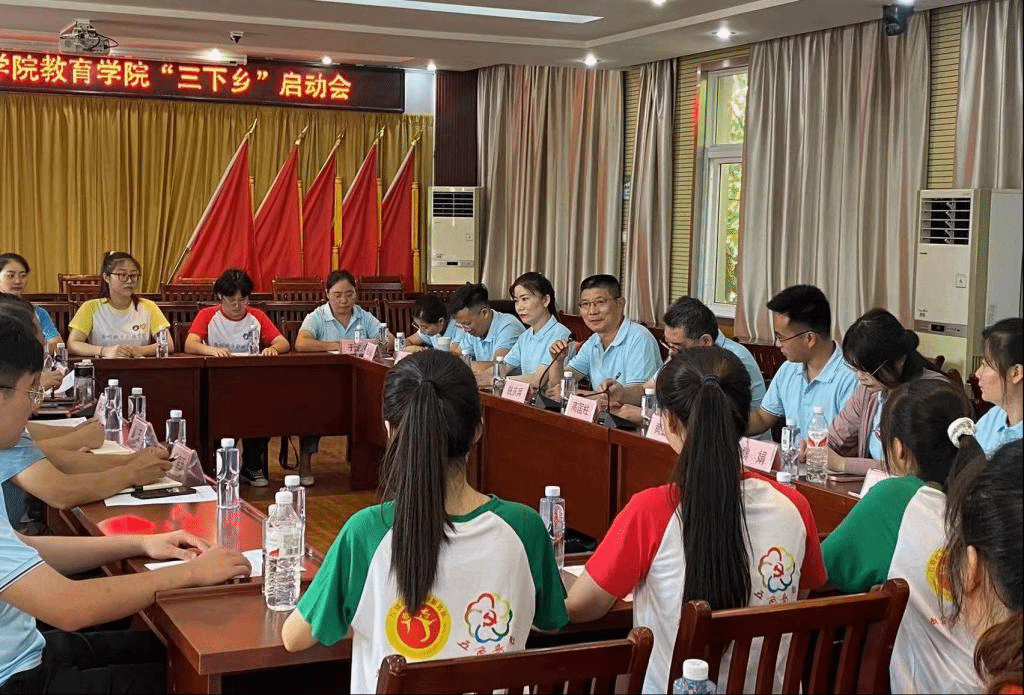 最后,党委委员、教育学院院长高国柱,教育学院党总支副书记徐立娟等师生也就本次“三下乡”暑期社会实践开展了丰富的交流。学生崔玉洁做表态发言,她说因为专业的多样性,也希望我们能发挥自己的长处和优势,拿最好的状态去迎接此次“三下乡”社会实践活动。