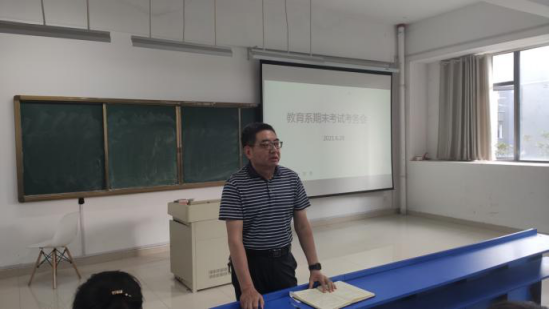 为进一步严肃考风考纪,做好本学期期末考试组织工作,教育系于628C1南2203召开教育系期末考试考务会,教育系监考教师出席会议,会议教育系系主任高国柱主持。