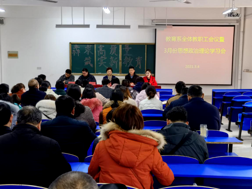 为使新学期工作开好头,起好步,统一思想、明确方向,发挥各位教职工的正能量,促进教育系2021年能“‘犇’向更高质量 筑实创新发展”,3月4日,教育系在C1南2203召开了新学期教职工会议暨3月思想政治理论学习会,教育系党政班子成员及全体教职工参加会议,会议由系党总支副书记徐立娟主持。联系领导院党委副书记、院长张志华出席会议并作指导讲话。