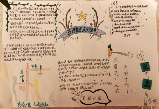 例行节约 反对浪费 宣传画 19学前初专1班作品