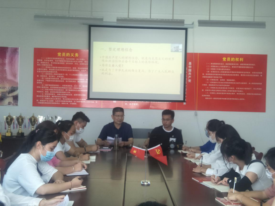 仪式结束后,系党总支书记钱庆兵为培训班学员们带来党课第一讲《坚定理想信念,做好新时代青年》,大家都以热情饱满、积极上进的心态聆听了党课教育。