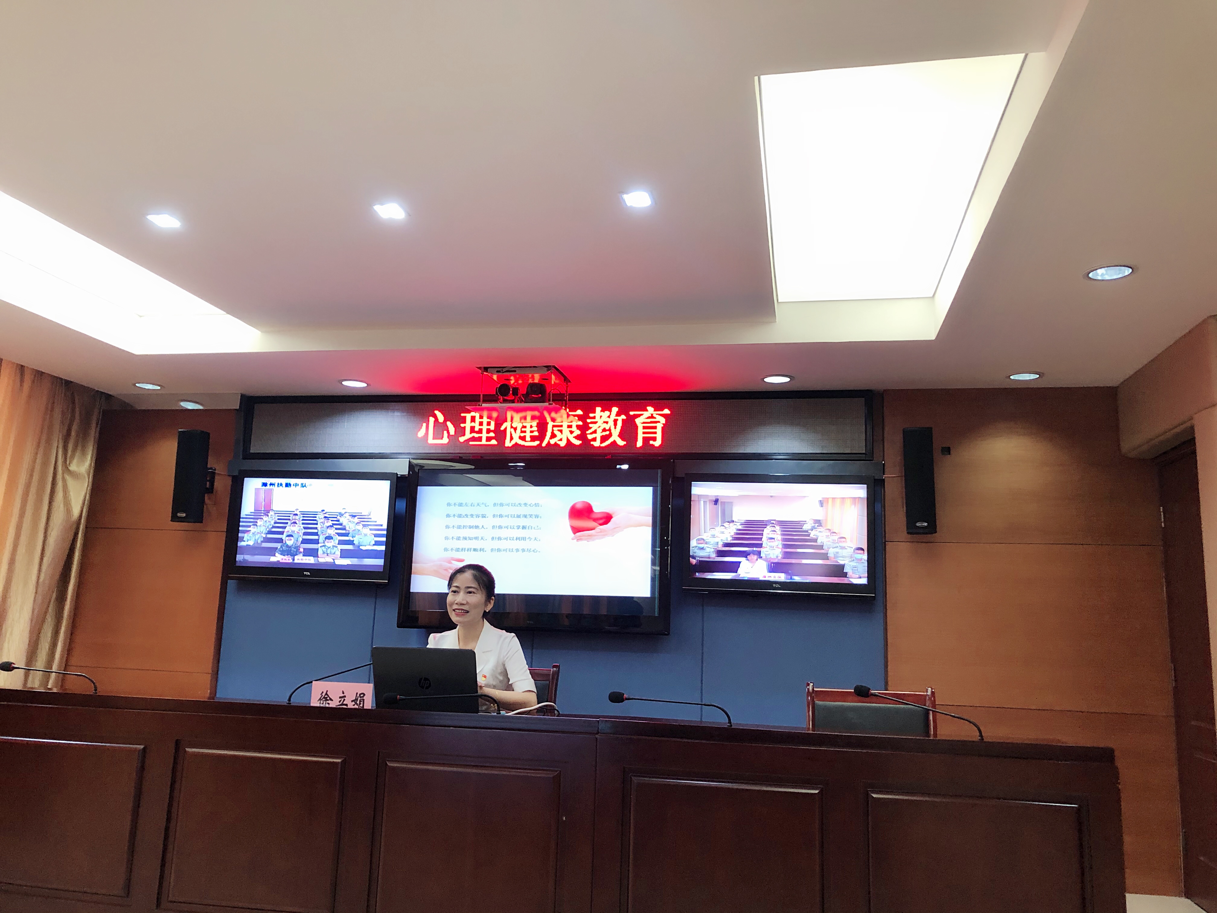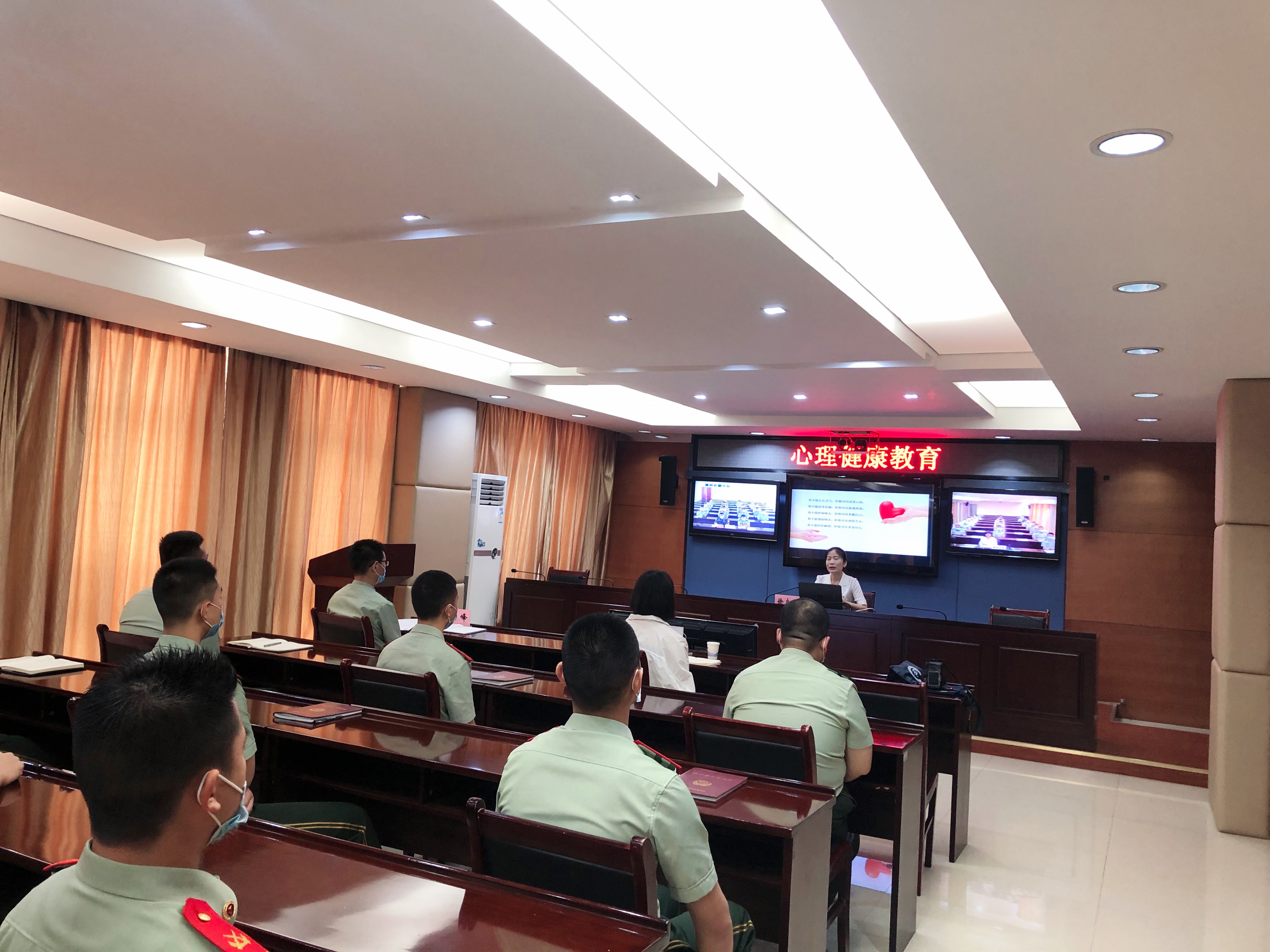 为更好深化双拥共建,充分发挥高校服务社会功能,“5·25”心理健康日来临之际,教育系学生党支部赴武警滁州支队开展了特色党日+“5·25”心理健康日活动。具备国家二级心理咨询师资格的徐立娟书记受武警滁州支队之邀,于5月26日上午,通过现场讲座及视频会议形式向全市武警官兵讲授了一堂生动的心理健康知识讲座,为官兵缓解心理压力,增强自我调适能力,确保官兵以健康的心理状态和饱满的工作热情投入到训练生活之中。